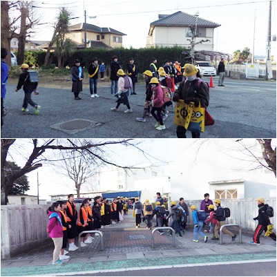 今回のあいさつ運動には,PTAの役員・常任委員・学級委員の方,民生委員や役所関係の方も参加しての活動です。
