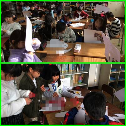 3年生では,卒業生を送る会に向けて動き出しています。6年生のみなさんに喜んでもらえるといいですね。作っている飾りや,3年生の出し物は,当日のお楽しみに。