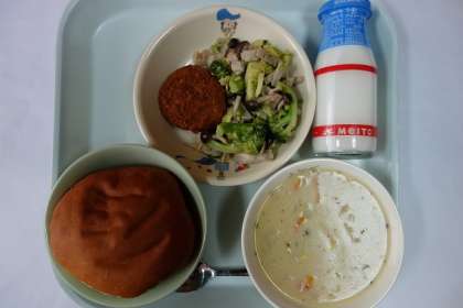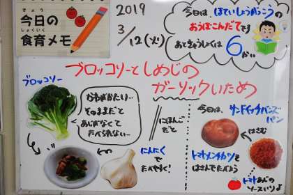 ※今日は、布袋小学校の応募献立です。ブロッコリーのみを食べるのが苦手な人もおいしく食べられるように、にんにくで炒めるという工夫をしてくれています。