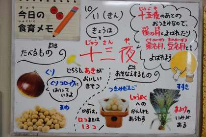 ※今日は十三夜です。十三夜は旧暦9月13日にあたり、十五夜の次に訪れる名月と言われています。この時期に収穫をした栗や豆を月にお供えすることから、栗名月豆名月とも呼ばれます。