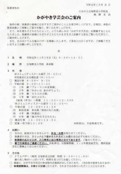 今年も,PTAバザーを開催いたします。皆様のご支援とご協力をお願いいたします。