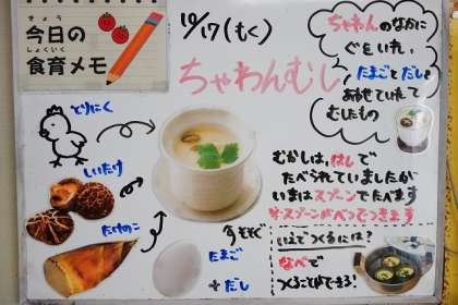 ※茶わんむしは昔は汁物の代わりに出されていました。スプーンがなかった時は、はしで混ぜて汁のように食べたそうです。今はスプーンで食べるのが一般的です。