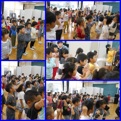 今日の五時間目は、学年で「ブレーメンの音楽隊」のダンスの練習をしました。