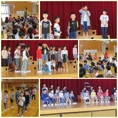 今日は、台本を見ずに場面毎に通して行いました。それを、見ていたその場面を演じていない子たちが、よかった点、こうしたらよくなる点を伝えました。