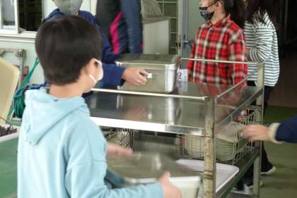 今日から、令和3年度の給食が始まりました。昨年度の給食委員の子どもたちが、片付けを手伝ってくれました。