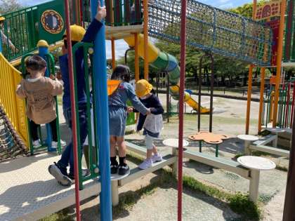 初めての遊具では、1年生の手をとって支えるすがたも見られました。
