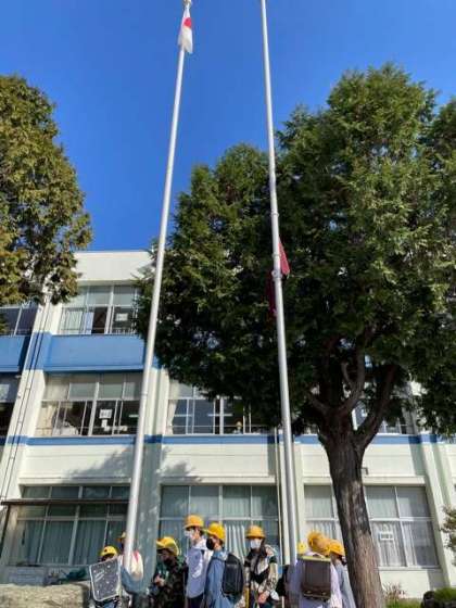 今日の写真は、毎朝国旗と校旗を掲揚している委員会の場面です。登校後に集まって準備をしてくれました。いつもありがとう。