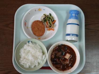 毎月19日は食育の日です。江南市では、江南市や愛知県産の特産物、郷土料理を取り入れています。今日は、江南市産の小松菜をおひたしにし、大根を八丁味噌汁に使いました。地元の食材を味わいましょう。