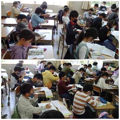 今日の写真は、給食後のチャレンジタイムの一場面です。各自で決めた学習に静かに取り組んでいます。静かに取り組む姿が印象的でした。
