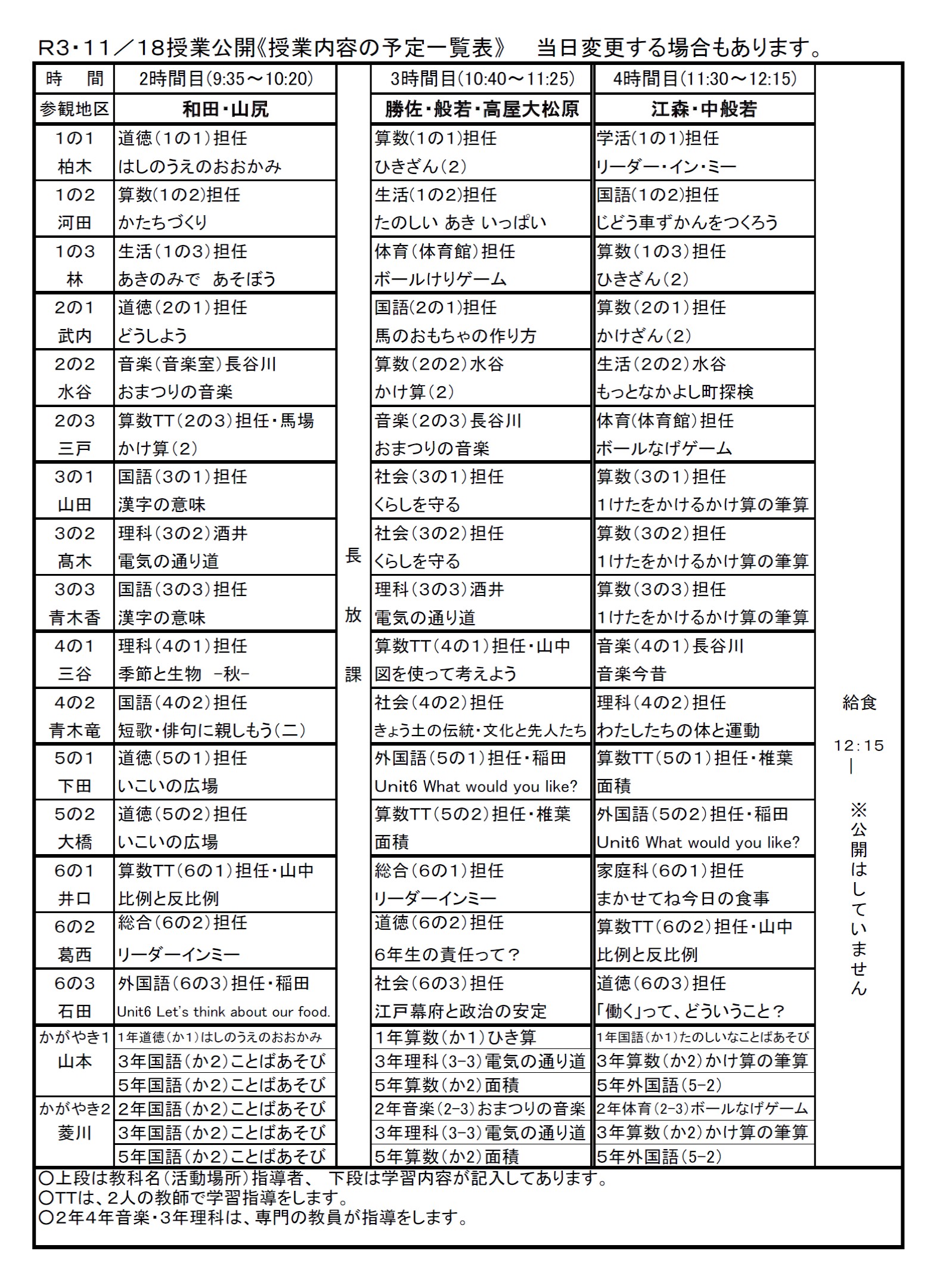 授業参観 公開授業一覧