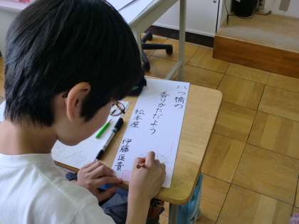 今日は、修学旅行の思い出を川柳に表してみました。五・七・五の17文字に思いを込めて、みんな得意げに詠んでいました。