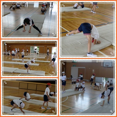 開脚前転や開脚後転においても、全身を曲げている状態から脚だけ伸ばす状態にすることがだんだんできるようになってきました。側転はまだまだ難しいようです。それに合わせて倒立の練習もしていきたいと思います。