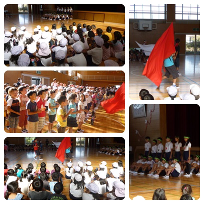 応援団の声に続いて元気よく「フレーフレー古北!」と言ったり、ウェーブをしたりして、古北小の代表にエールを送りました。