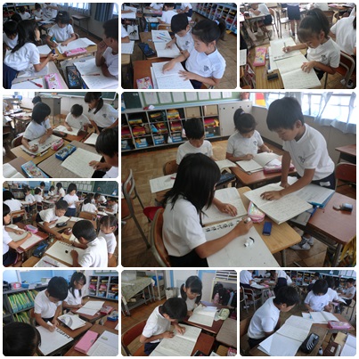 今日は国語で、漢字の「へんとつくり」について学習をしました。3年生になって、むずかしい漢字をいくつも学習しています。その学習をしてきた漢字の中には、同じ「へん」をもつものがあることに気づき、同じ「へん」の漢字を集めることを目標に取り組みました。漢字には「へん」があることを学んだ後、グループで漢字集めをしました。教科書の索引ページやこれまでに習った漢字を思い出しながら、集めていました。みんなで楽しい授業となりました。