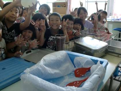 今日の給食のメニューは、ご飯・牛乳・鰯の甘露煮・ジャガイモの旨煮・ゆかり和えでした。運動会の後から、おかわりをする子が増えてきました。いただきますの後、どの子もモリモリ食べていて、1年3組は全部食べきってしまいました。食欲と学習の秋ですね。
