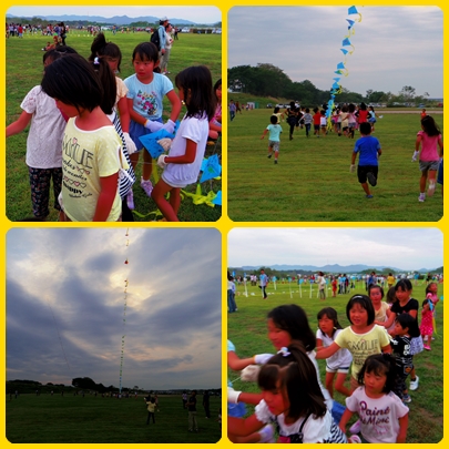 残念ながらほとんど風がなく,長くつながれた連だこが華麗に舞い上がる姿を,長時間にわたり楽しむことはできませんでした。それでも子どもたちは思いっきり走り回り,友だちと一緒に楽しい時間を過ごすことができたと思います。子どもたちの心の中には,新しい思い出が,1ページ増えましたね。