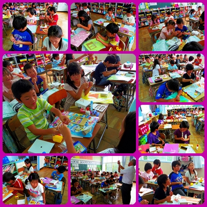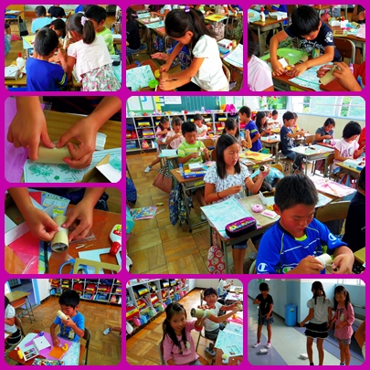 今日の図工から,‘ゴムの力でトコトコ’に入りました。どんなものができるか楽しみですが,今日はその飾り付けではなく,まずは土台作りに励みました。