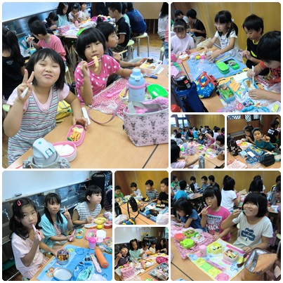 蜜ロウソク作りの後は、朝から楽しみにしていたお弁当の時間。「おなかすいた〜」「楽しみにしていたんだよね〜」と嬉しそうにお弁当を広げていました。今回も、手の込んだキャラ弁や彩り豊かなお弁当がたくさん。みんな嬉しそうに食べていました。やっぱりお家の方が作ったお弁当が、大好きなんですね。その後のおやつタイムもみんなで楽しく過ごしました。最後は、使用したお部屋をみんなで掃除をしました。