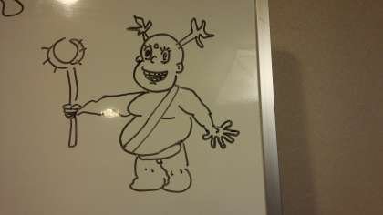 大島画伯が、ホワイトボードにメッセージを書きました!きっと明日も、モリモリの一日となることでしょう。