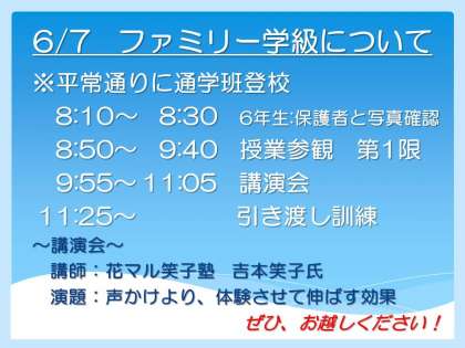 ※講演会の時間帯は、児童は「授業・帰りの会」となります。