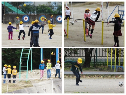 空もどんよりし、10時現在の気温も「11度」と、寒さを感じますが、午後からの雨に備えて「今のうちにしっかり遊ぼう!」といった声が聞こえてきそうな、長放課の子ども達です。