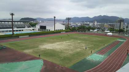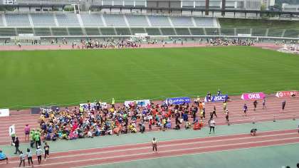 サブトラックでは、外国人選手などの特別招待選手がアップをしています。