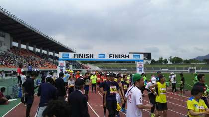 3kmから、右足ふくらはぎに痛みが走り、残り18kmを、途中、歩きながら、なんとかゴールです。