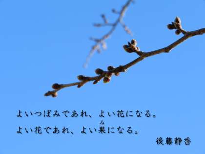 小学生の皆さんは、まだつぼみの状態です。ぜひ、よいつぼみで成長し、よい花を咲かせ、よい実となってくださいね。