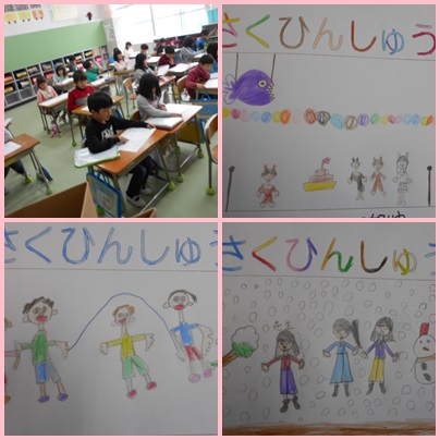 1年生の教室で過ごすのも,あと数日となりました。作品集をまとめたり,確認テストをしたりと,忙しく過ごしています。