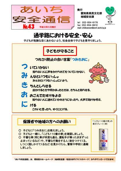 愛知県県民文化部地域安全課より、「あいち安全通 No.43」が届きました。