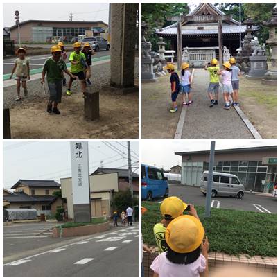 今回の目的は,グループで安全に気を付けて行動することです。グループで協力しながら,ワークシートの問題を解いたり,建物などの様子を写真に撮ったりしながら安全に気を付けて行動することができましたね。