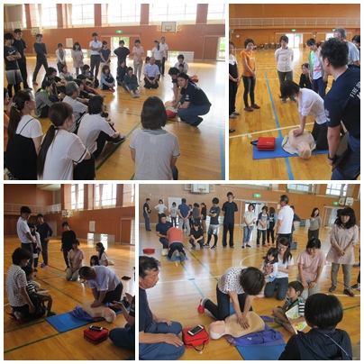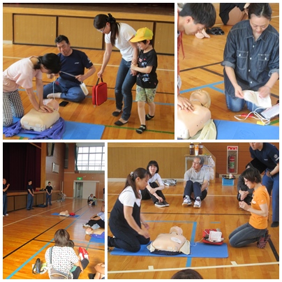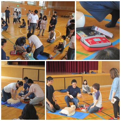 もしものために,救急法講習会で,AEDの使い方や心臓マッサージについて講習を受けました。