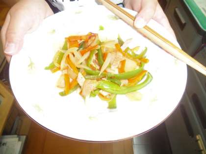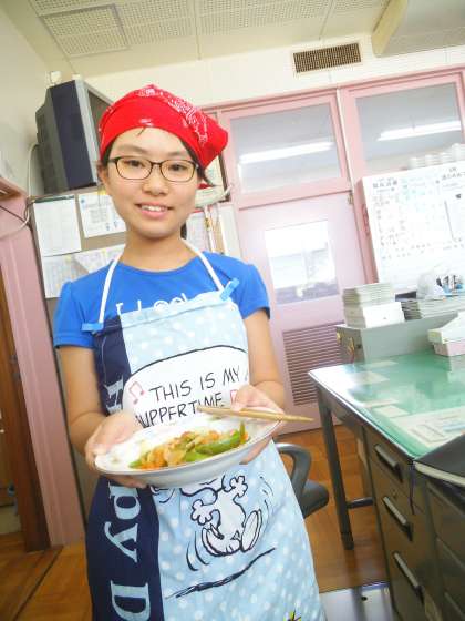 6年3組が調理実習で作った「野菜炒め」を職員室に届けてくれました。