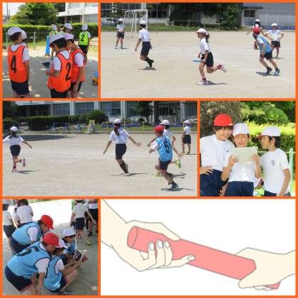3時間目は1組、4時間目は2組が体育でリレー学習に励みました。