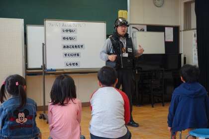 今日はアルソックの方に来校していただいて、1年生に、安心・安全教室を実施しました。
