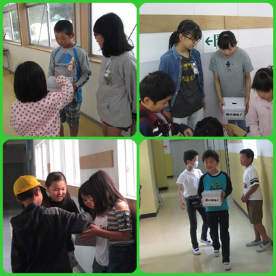 各学年の廊下で、児童会の児童が募金の呼びかけをしました。