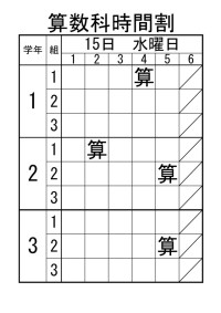 9月25日(木)1~3年生の算数の授業予定です。就学時健康診断のため、特別日...