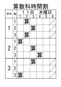 11月13日(木)の1~3年生の算数の授業予定です。通常日課です。よろしくお...