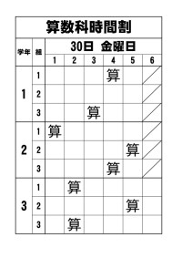 1月30日(金)の1~3年生の算数の授業予定です。通常日課です。よろしくお願...