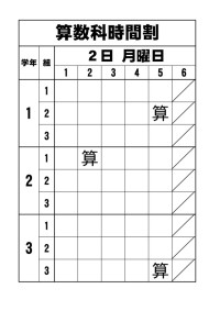 2月3日(火t)の1~3年生の算数の授業予定です。通常日課です。よろしくお願...