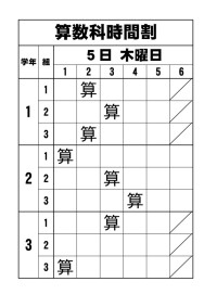 2月12日(木)の1~3年生の算数の授業予定です。通常日課です。よろしくお願...