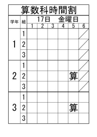 10月17日(金)1~3年生の算数の授業予定です。写真が掲載できておらず、申し訳ございませんでした。通常日課です。よろしくお願いいたします。