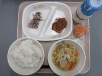 今日の献立は、ごはん・牛乳・あつあげとうふのにくみそあん・だいこんとぶたにくのにもの・きゅうりのごまじょうゆです。