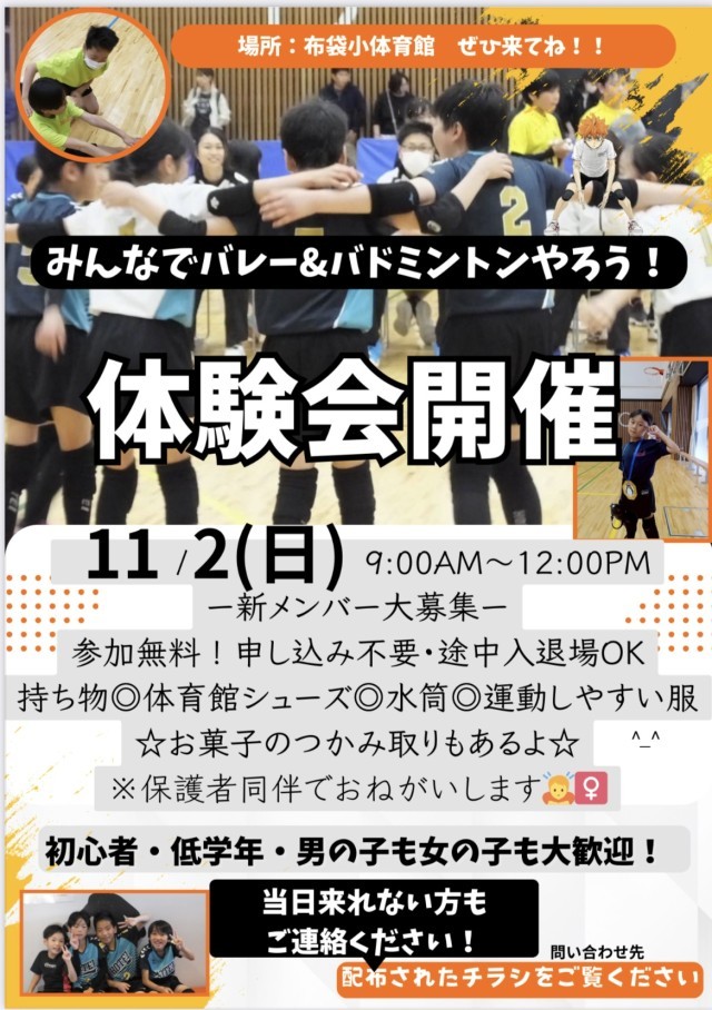 11月2日(日)にスポーツ少年団体験会を開催します。