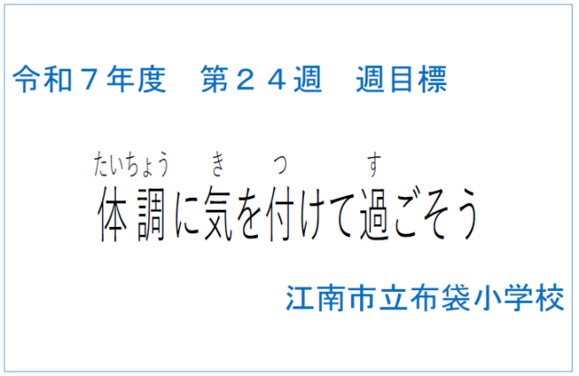 今週と来週の週目標は「体調に気を付けて過ごそう」です。季節が変わり気温も大きく変化しました。肌寒い日が続きますが、体調に気を付けて元気に過ごしましょう。