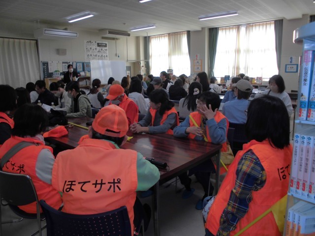 ほてサポは保護者とともに小グループに別れた班に付き添い、交通安全に配慮して引率を行いました。