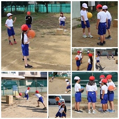 そのうち、「先生、段ボールに当たって倒れても点数は同じですか?」という質問をする児童が出てきました。そこで、自分たちでルールを考えて的あてゲームをするように伝えました。段ボールの当たり方によってはたくさん点数がもらえたり、投げる場所を増やして点数を変えたりするなど、グループで話し合って工夫していました。子どもたちが考える場面を作ることで、より楽しい的あてゲームになり、とてもよかったと思います。