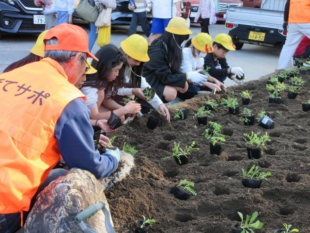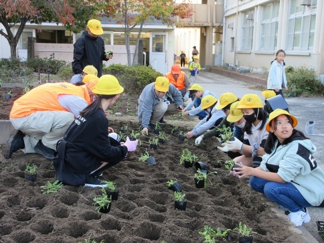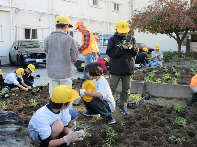 今日は、ほてサポの皆様のご協力のもと、生き物委員会の児童が苗植えをしました。大きく育つように、心を込めて植えました。ほてサポの皆様、本日もありがとうございました。