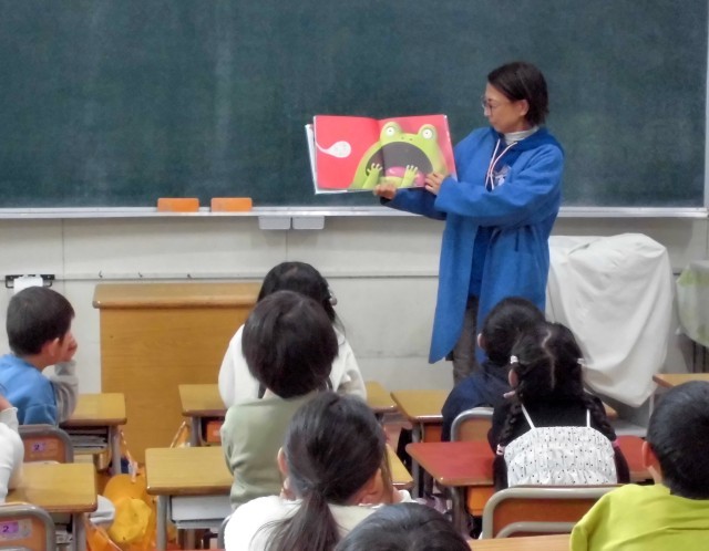 今日明日の2日間、1年生から3年生の各クラスではげみの時間を利用して、読み聞かせをしました。