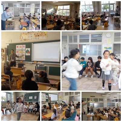 外国語活動の学習がありました。1年生の外国語の学習は、学期に1回です。